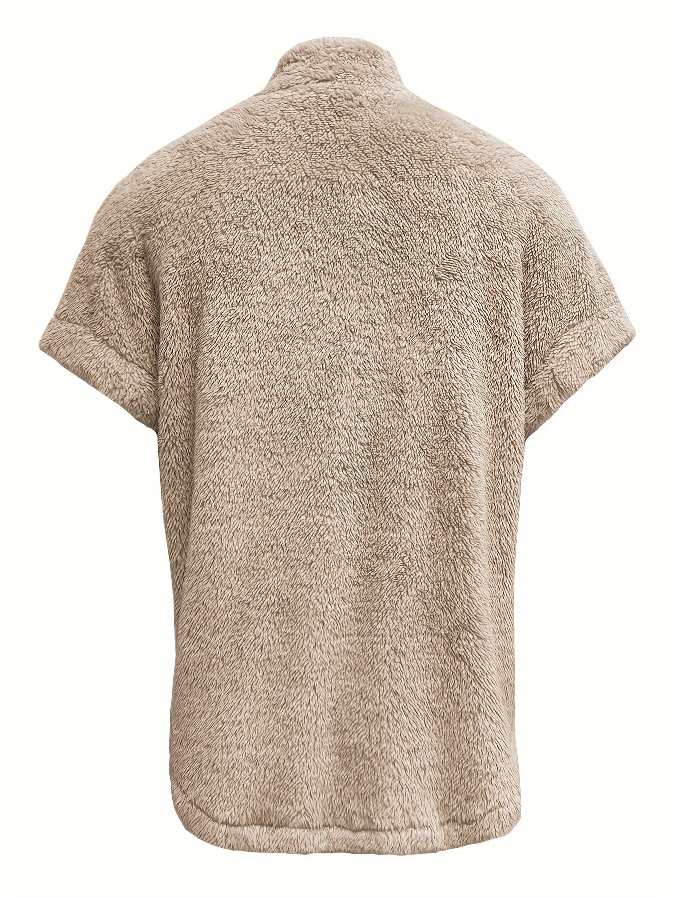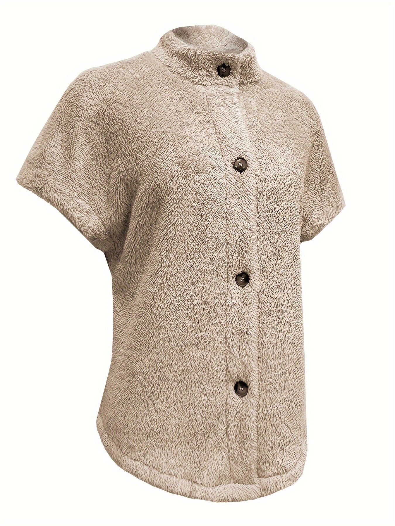 Veste Teddy Élegante Beige pour Femmes – Manches Courtes & Boutons, Parfaite pour l'Automne/Hiver